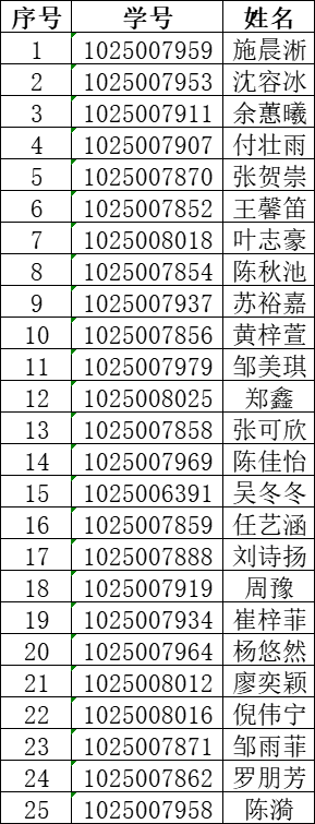 依照学院关于英法sy2501班学生选拔工作安排,经过学生申请,资格审查,笔试和面试,学院英法sy2501班学生选拔工作小组拟推荐以下学生就读英法sy2501班。现将名单予以公示: