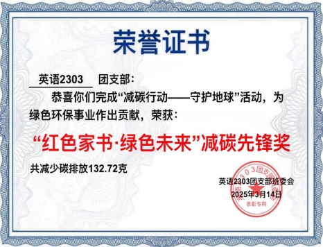 3月10日,英语2303团支部在南湖校区博学广场开展了“赤墨丹心·红色家书解码行动”主题活动。活动以家书为情感纽带,旨在传承红色基因,弘扬爱国情怀。团员们积极参与“见字如面”双语家书行动,撰写中英对照的电子家书,表达对家人的思念与感恩。同时,团支部还发起了“纸短情长”低碳实践计划,倡导环保理念,每提交一封电子家书,班长会为作者颁发原创设计的动态电子证书,记录节约用纸和减少碳排放的贡献。活动不仅增进了团员与家人的感情,还通过双语写作展现了语言专业学生的风采。