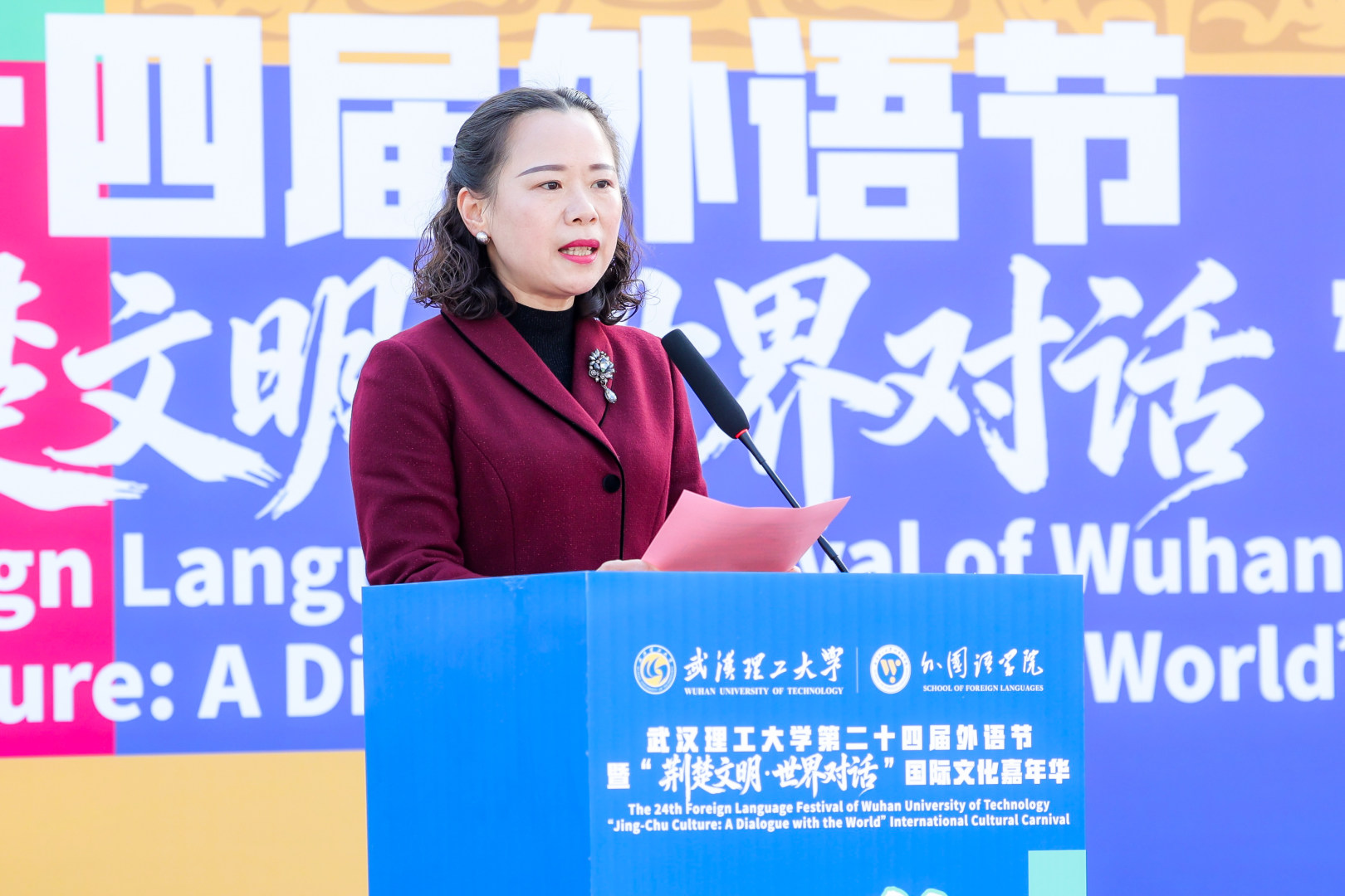 千年荆韵,对话世界。11月20日,bwin必赢3003第二十四届外语节暨“荆楚文明·世界对话”文化嘉年华,在南湖校区博学广场正式开幕。校党委常委、副校长李政颖出席活动并致辞,他指出,外语节是学校践行文化自信、推动文明互鉴的重要平台,勉励学子以语言为舟、以文化为帆,在讲述荆楚故事的同时,搭建中国与世界沟通的桥梁。